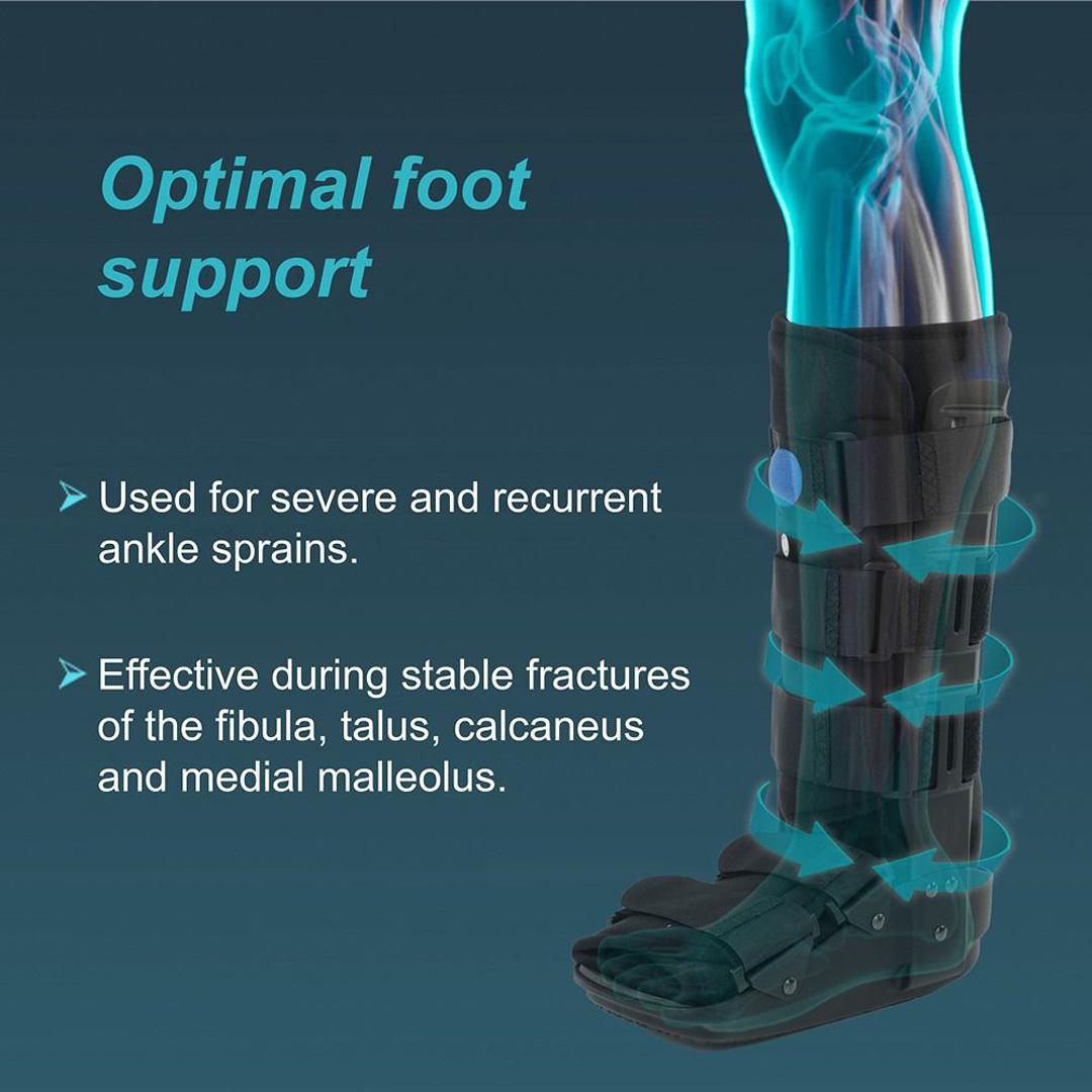Designed to provide ankle deloading, immobilization and support to the fractured ankle/lower leg. Walker boot can be a substitute for a cast or can be used in case of early cast removal, It helps in early ambulation of the patient with ankle/lower leg fractures. With a wider rocker bottom, these boots promote a natural gait, reduced plantar pressure, enhanced stability and comfort to the lower leg.