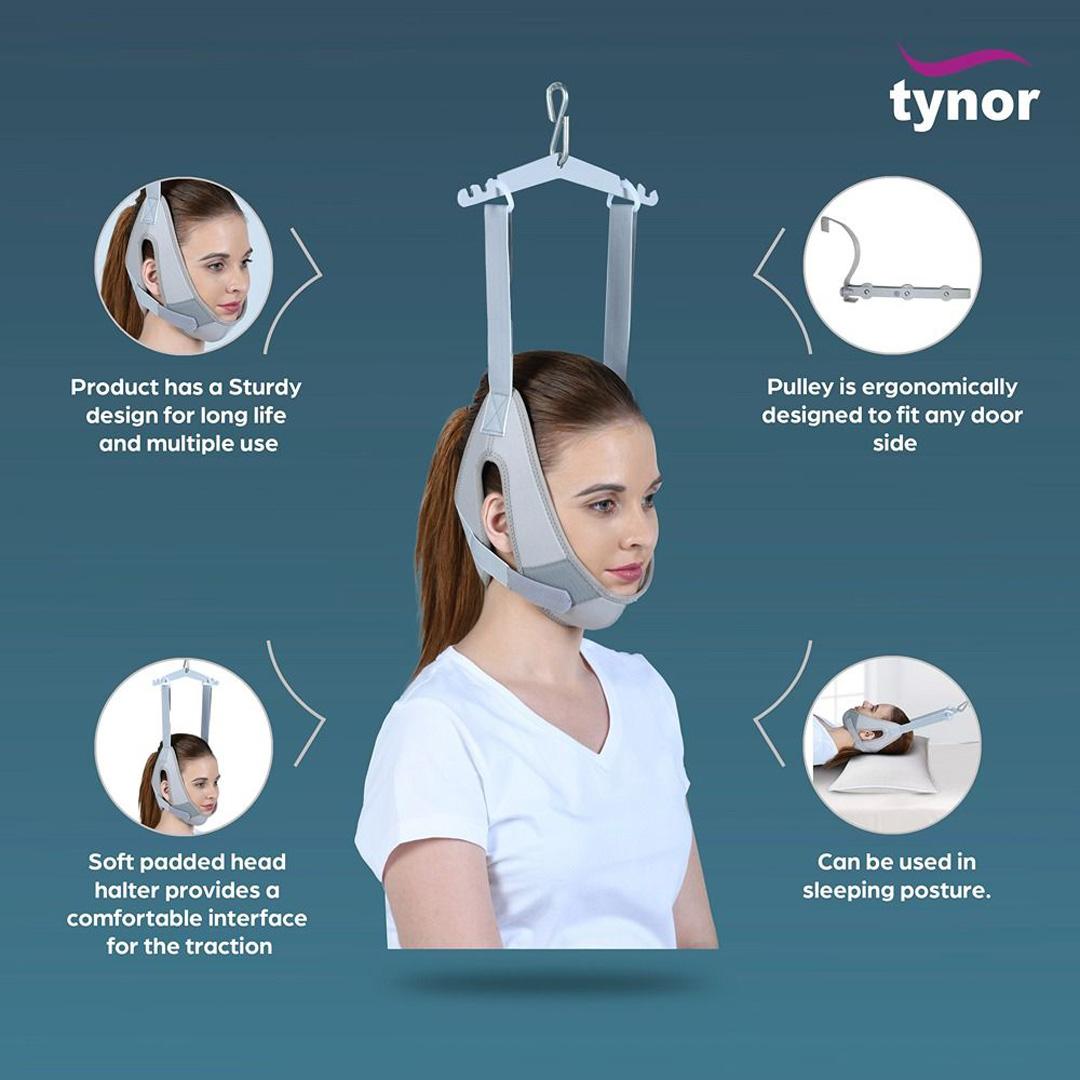 A traction kit designed to provide traction to the cervical and upper thoracic vertebrae. It eases pressure and expands the space between the neck bones by stretching the muscles and tissues. This compact kit can be comfortably used while sitting to provide relief and reduce stress on the anterior vertebral bodies.