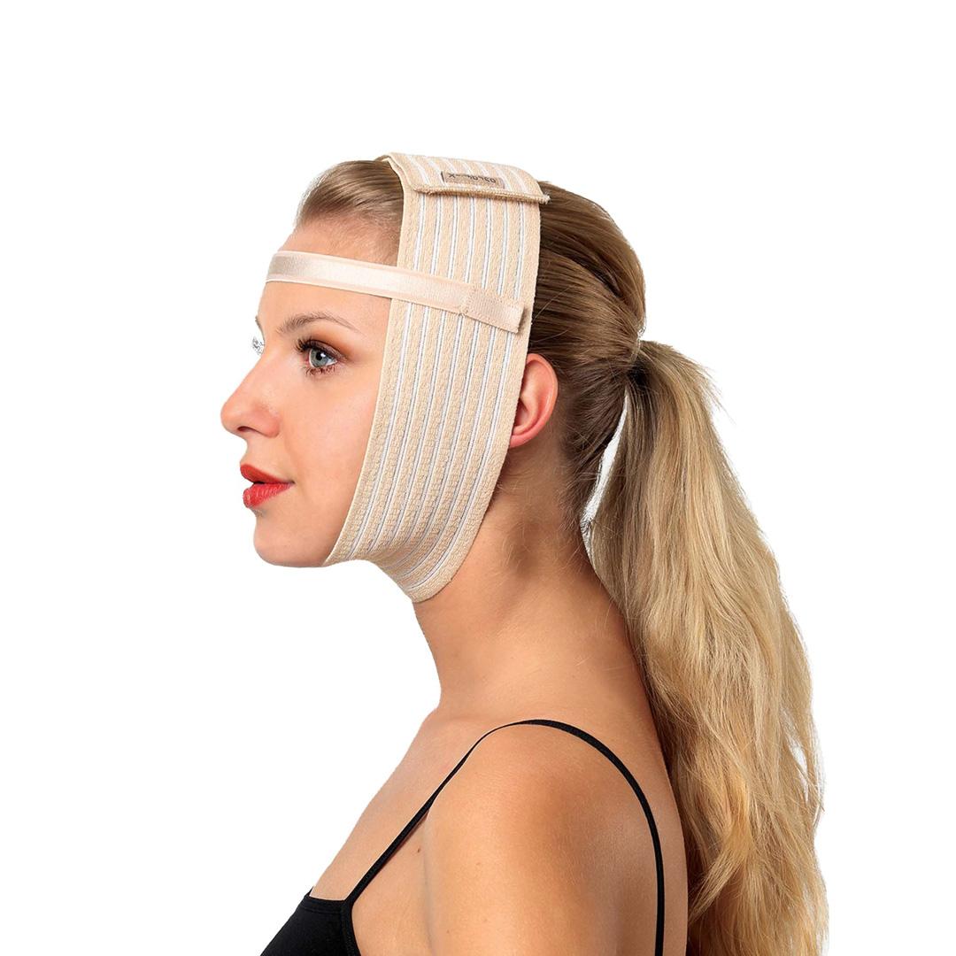 Manufactured from easily adjustable and breathable elastic materials used after chin, forehead, face lift and prominent ear operations. Due to the compression effect it applied, it increases blood circulation and reduces edema after surgery. There is a strap that enables the product to be fixed on the forehead.